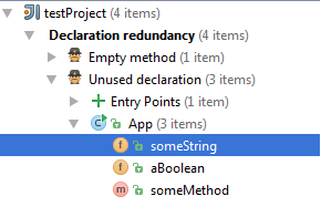 In case you don’t want to change anything regarding the code IntelliJ considers broke, you can choose to ‘Suppress’ the warning. This option will add an annotation to the method or attribute you chose to ignore, meaning that the next time an inspection is run, the annotated component will be excluded from the inspection and will not be suggested as incorrect. Some of the long list of potential issues are described below (currently the tools supports over 600 types of inspections):