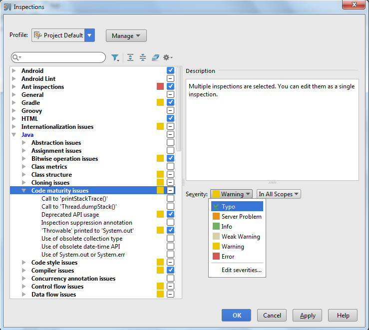 2 thoughts on “Improving your code by using IntelliJ’s Inspections feature”