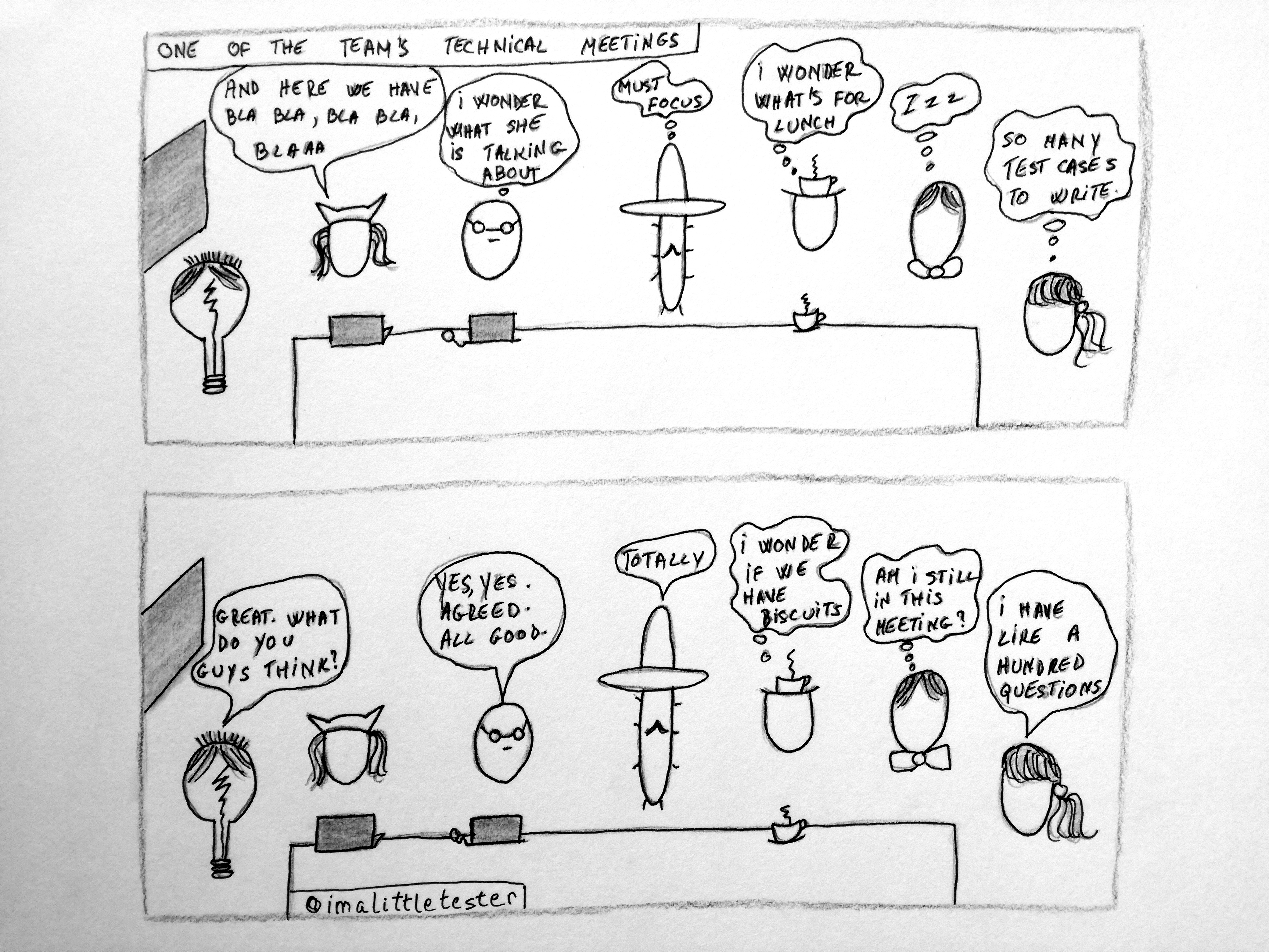 These are the made up stories of a team working in an Agile environment. Their daily struggles and successes are presented in a comic/parody/satirical way. Click on the image to see it in full size.