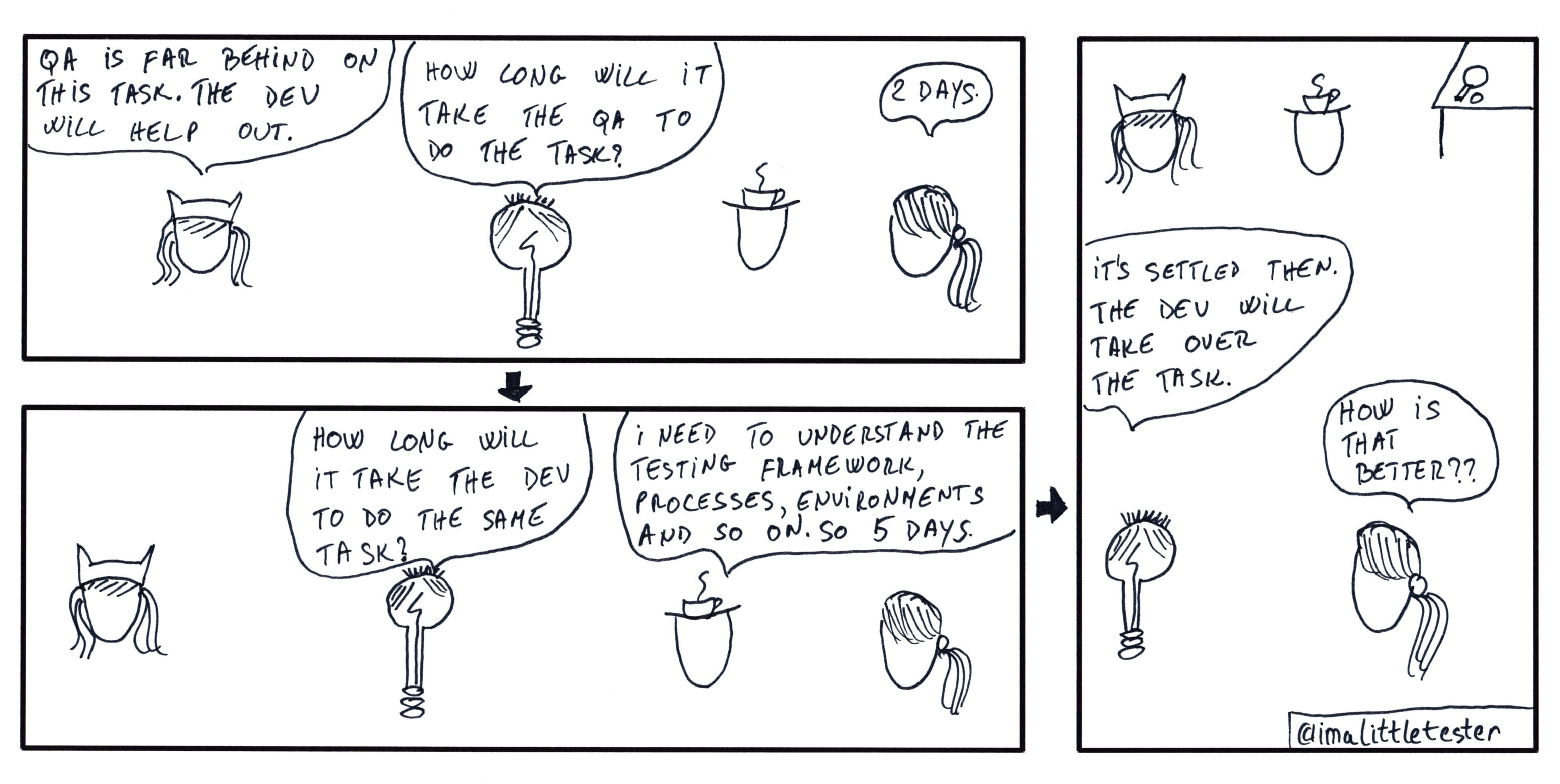These are the made up stories of a team working in an Agile environment. Their daily struggles and successes are presented in a comic/parody/satirical way. Click on the image to see it in full size.