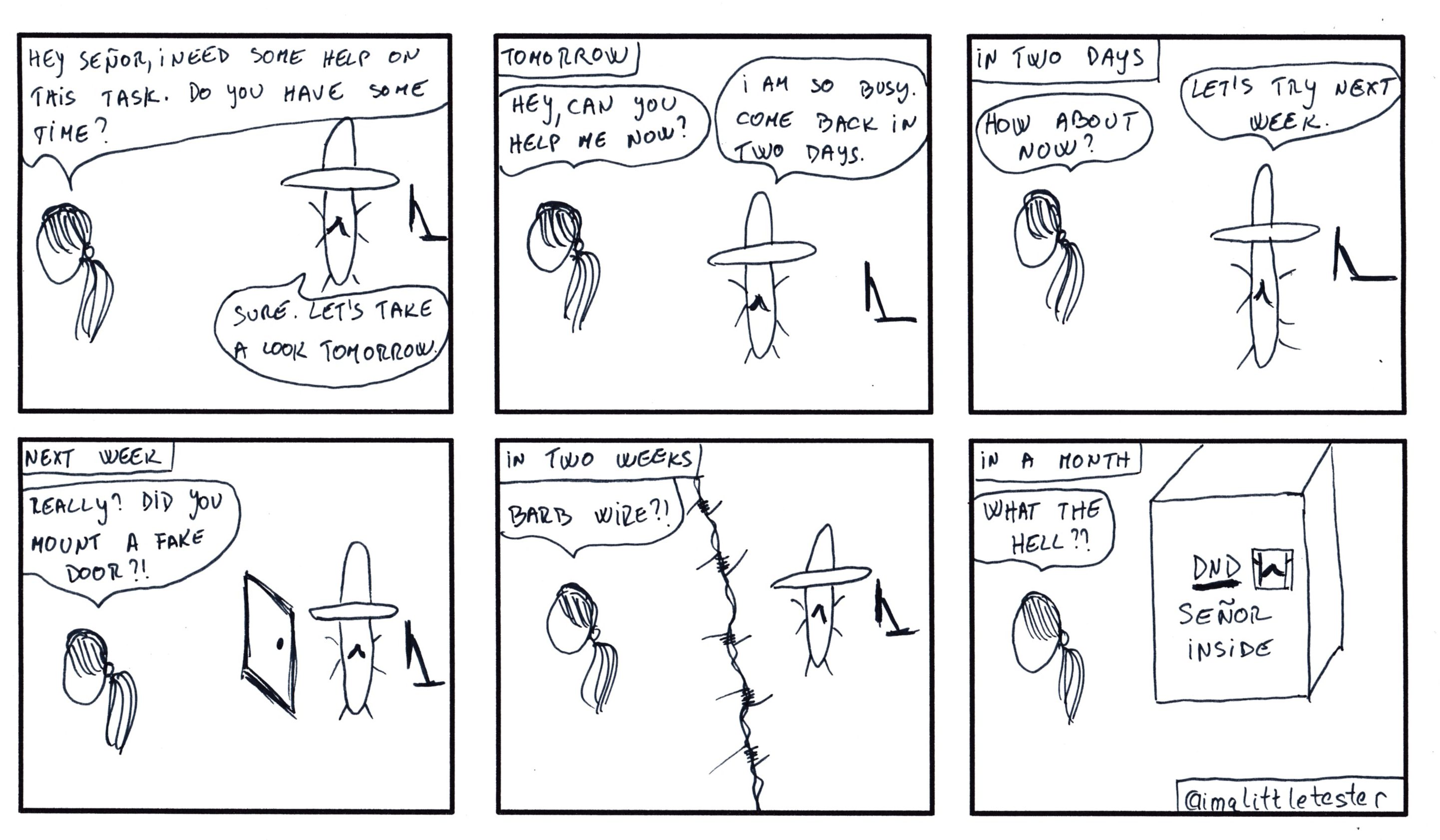These are the made up stories of a team working in an Agile environment. Their daily struggles and successes are presented in a comic/parody/satirical way. Click on the image to see it in full size.
