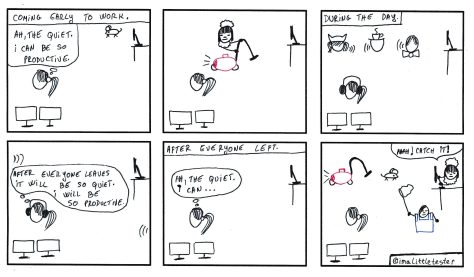 These are the made up stories of a team working in an Agile environment. Their daily struggles and successes are presented in a comic/parody/satirical way. Click on the image to see it in full size.