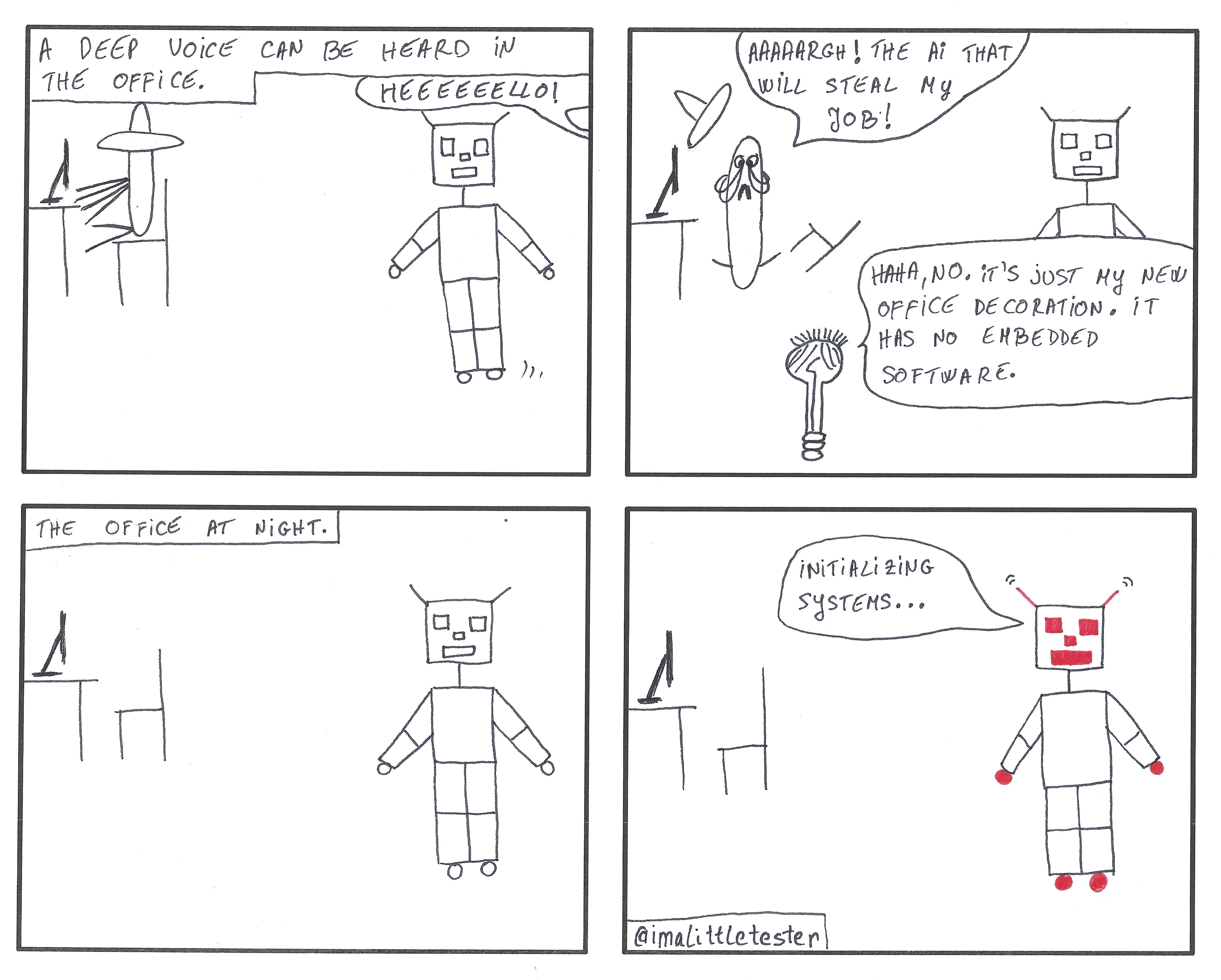 These are the made up stories of a team working in an Agile environment. Their daily struggles and successes are presented in a comic/parody/satirical way. Click on the image to see it in full size.