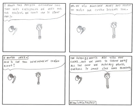 These are the made up stories of a team working in an Agile environment. Their daily struggles and successes are presented in a comic/parody/satirical way. Click on the image to see it in full size.
