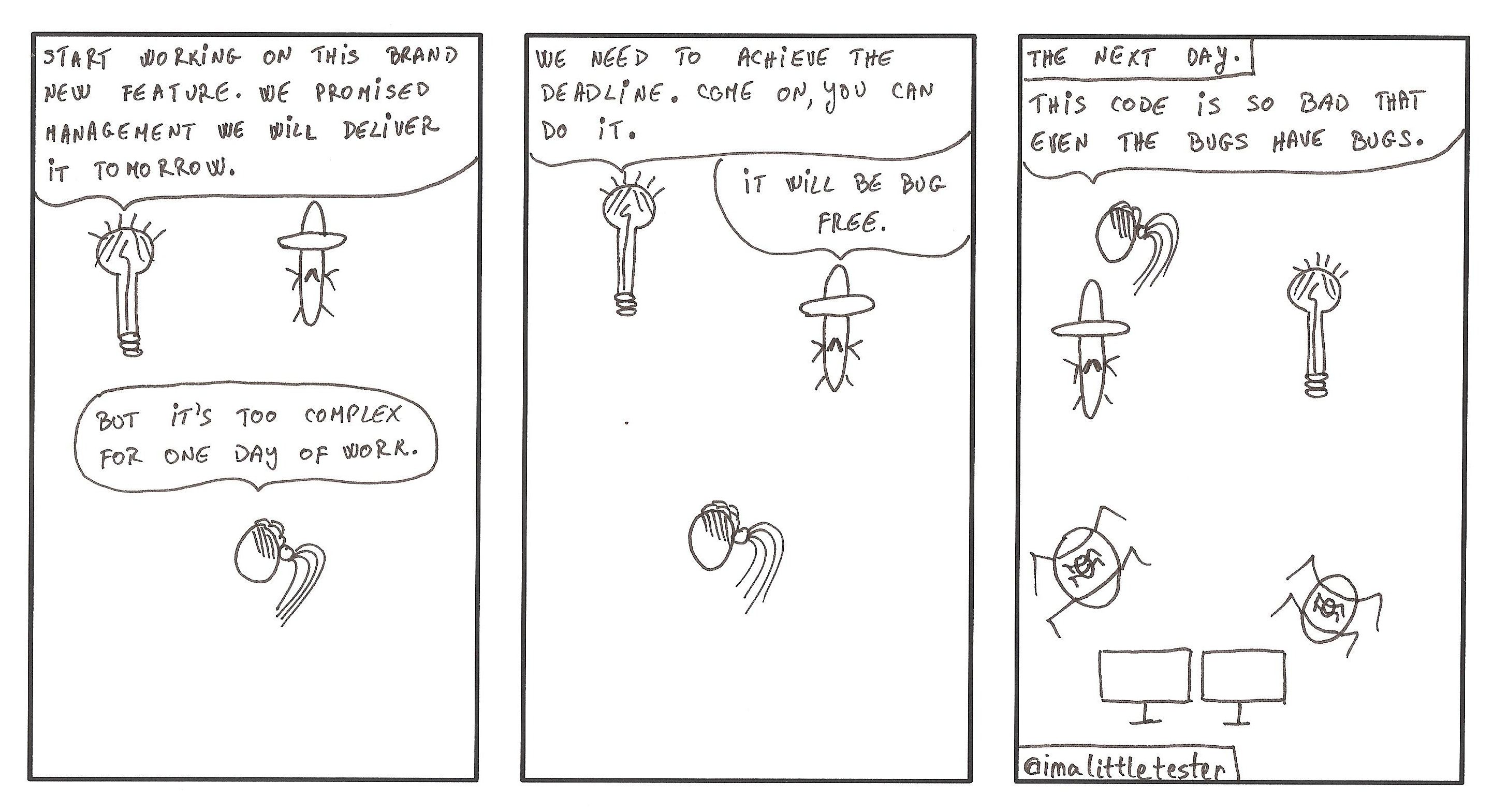 These are the made up stories of a team working in an Agile environment. Their daily struggles and successes are presented in a comic/parody/satirical way. Click on the image to see it in full size.