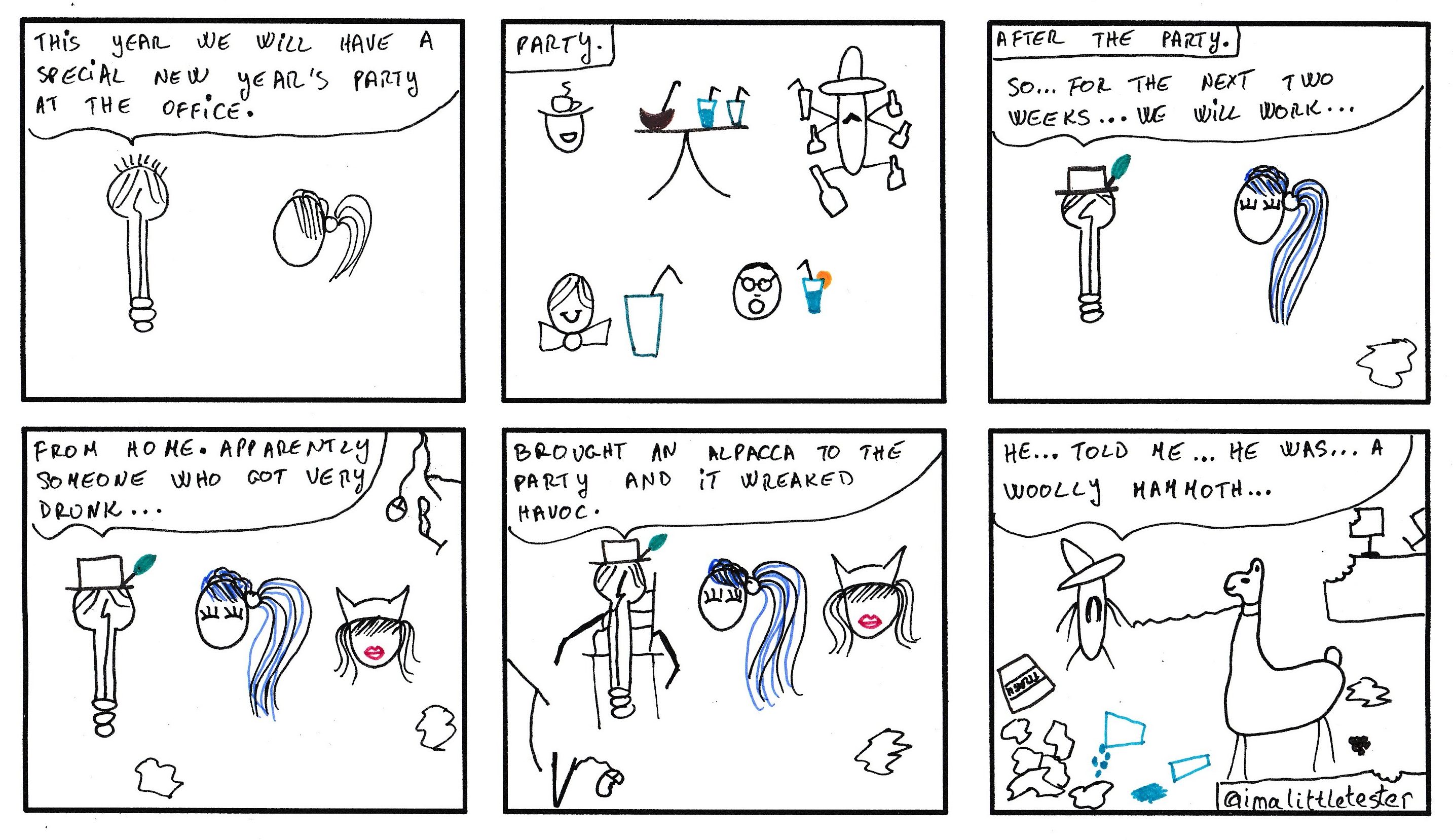 These are the made up stories of a team working in an Agile environment. Their daily struggles and successes are presented in a comic/parody/satirical way. Click on the image to see it in full size.