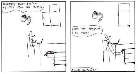 These are the made up stories of a team working in an Agile environment. Their daily struggles and successes are presented in a comic/parody/satirical way. Click on the image to see it in full size.