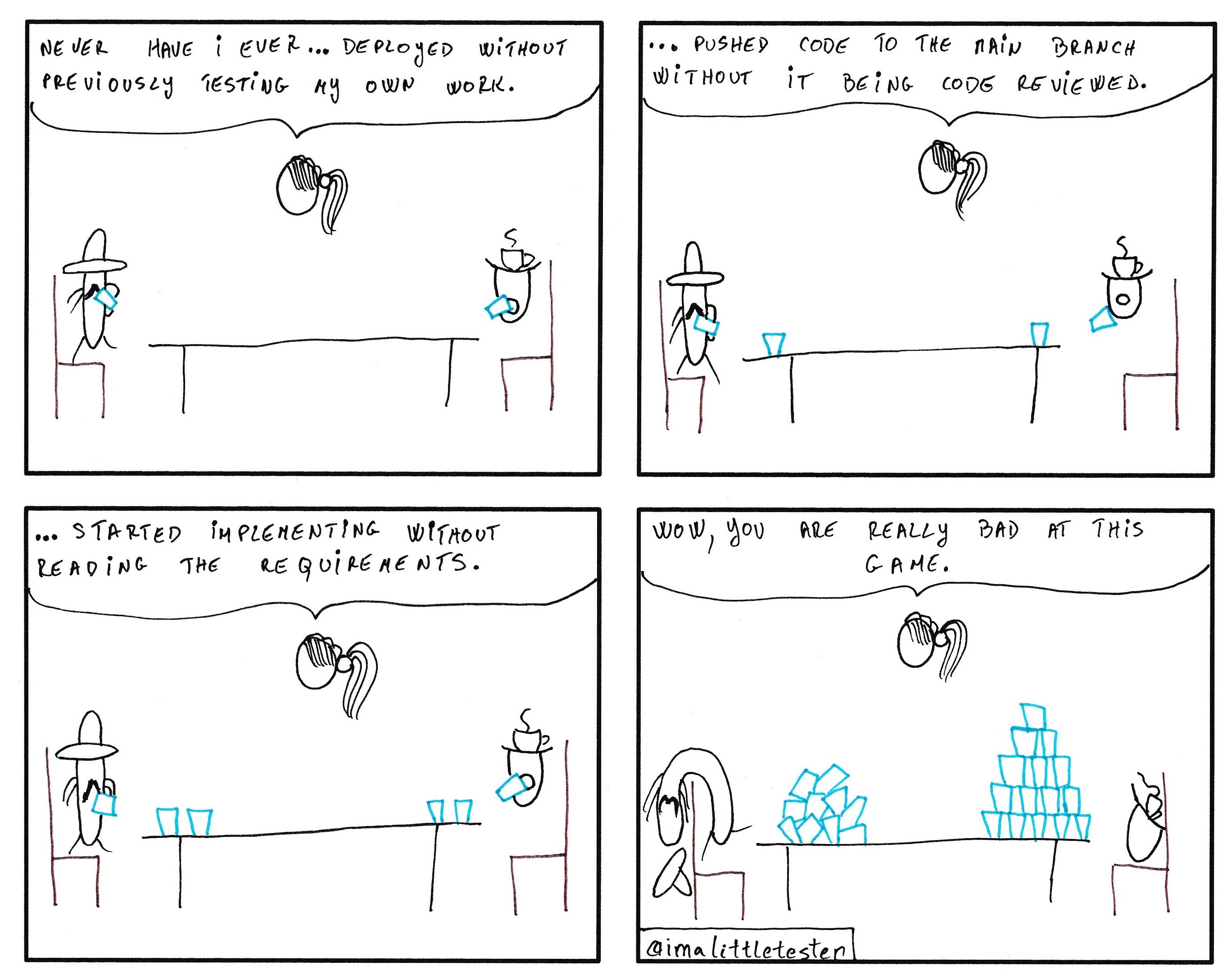 These are the made up stories of a team working in an Agile environment. Their daily struggles and successes are presented in a comic/parody/satirical way. Click on the image to see it in full size.