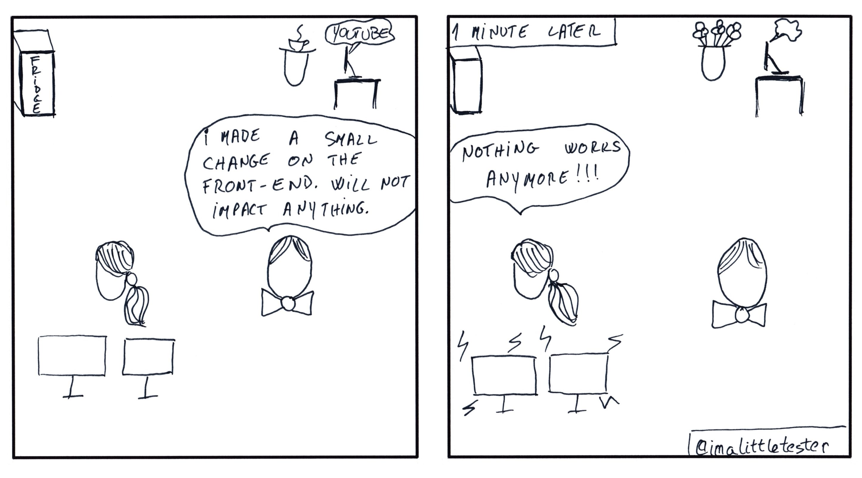 comics The Little Tester – Stories in Testing #7 Image August 20, 2018 iamalittletester 1 Comment Continue reading The Little Tester – Stories in Testing #7 → Share this:TweetShare on Tumblr Click to email a link to a friend (Opens in new window) Email Pocket Click to share on WhatsApp (Opens in new window) WhatsApp